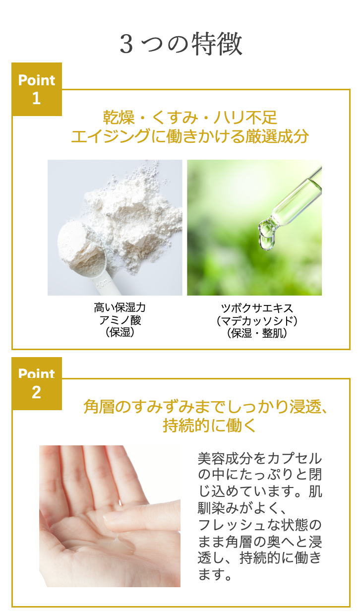 うるおい・ハリ・弾力不足のお肌に 高浸透カプセルが深く届く※